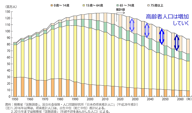 その一方で、65歳以上、特に75歳以上の高齢者人口は、35年後の2060年ごろまで増え続けていきます。今後の国内旅行者への対応を考える中で、「高齢者と一緒に楽しめる旅行」を特徴としていくことは、観光地としての大きなブランド力の向上につながります。